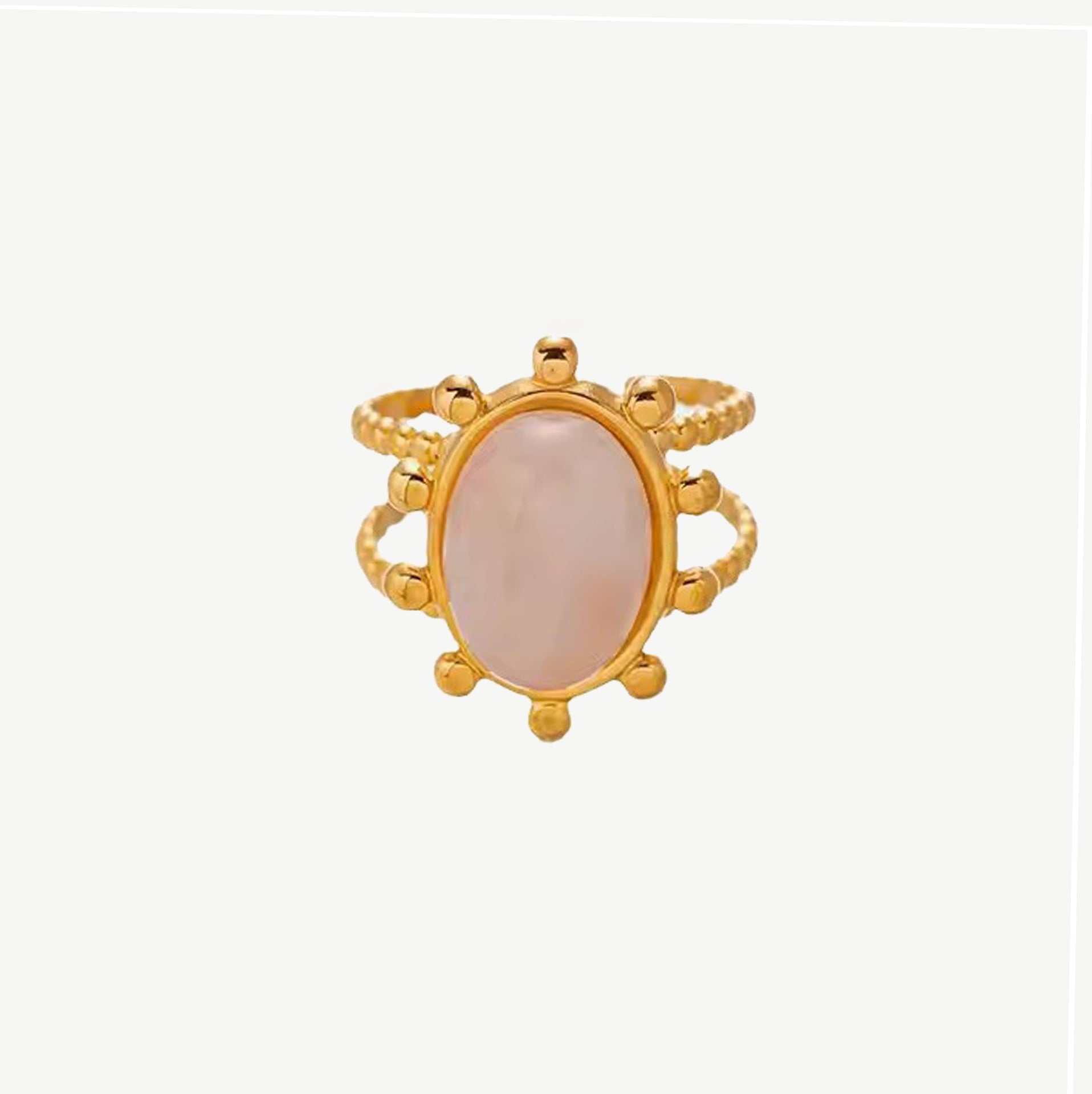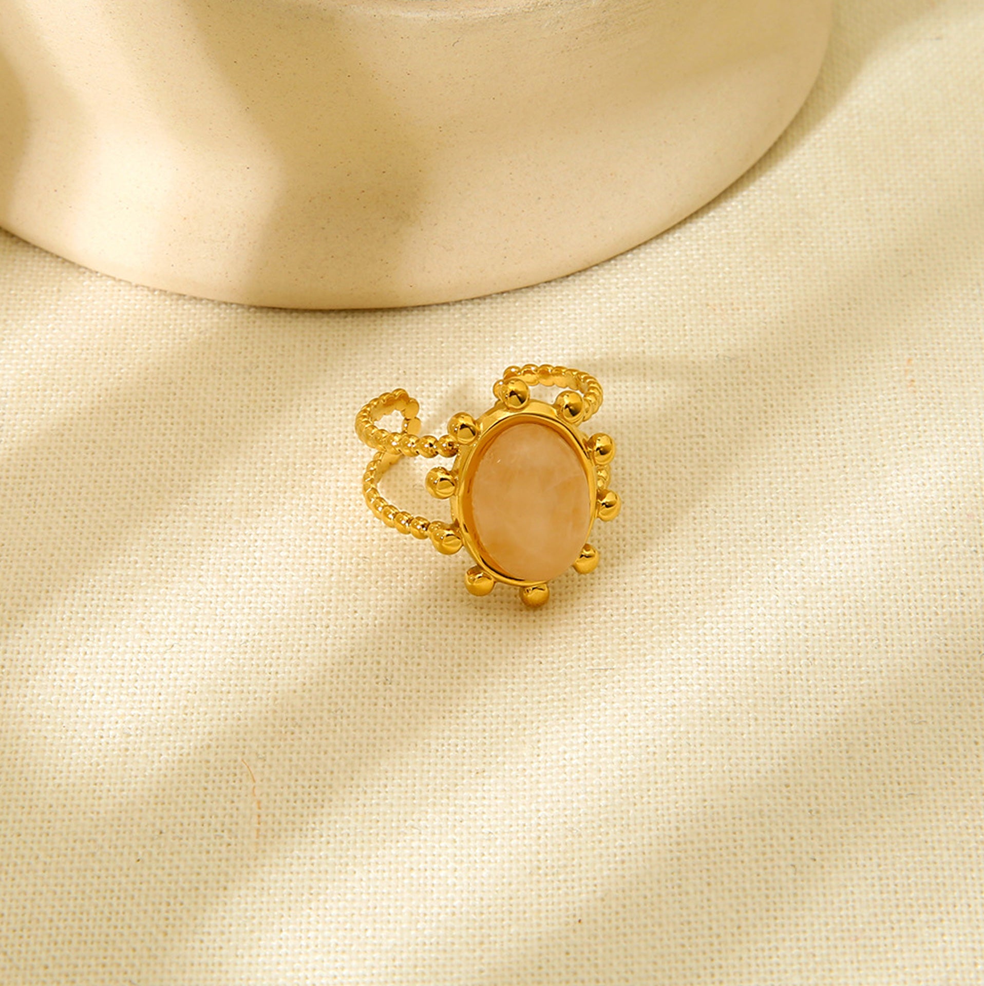 Channel free-spirited elegance with Ornavella’s boho-inspired adjustable ring, featuring a soft peach gemstone framed by intricate gold beaded detailing. Lightweight and adjustable for all-day comfort, this ring effortlessly complements your casual, festival, or layered boho looks.