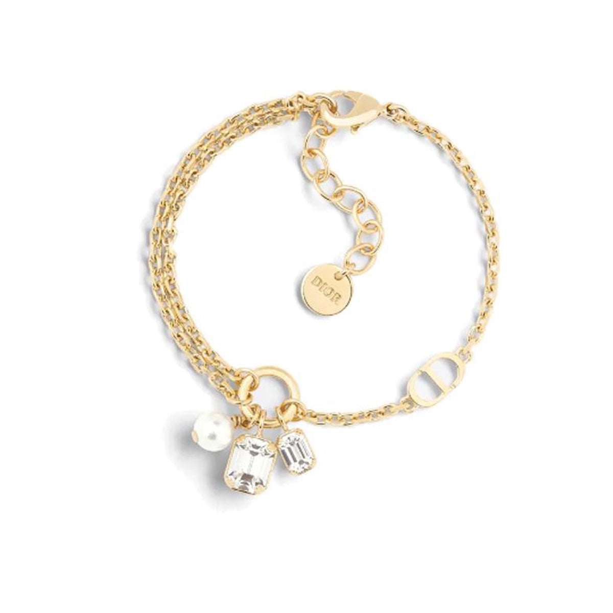 The Dior Petit CD Bracelet in metal is a delicate and refined statement piece, embodying elegance and modern sophistication. Designed to elevate any outfit, this bracelet features a timeless CD signature, a luminous white resin pearl, and sparkling silver-tone faceted crystals that add a touch of radiance and luxury.