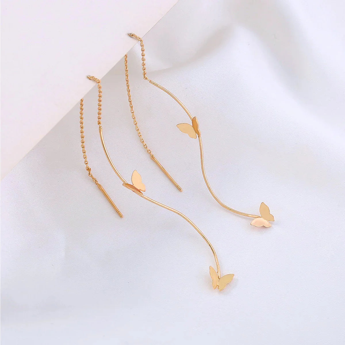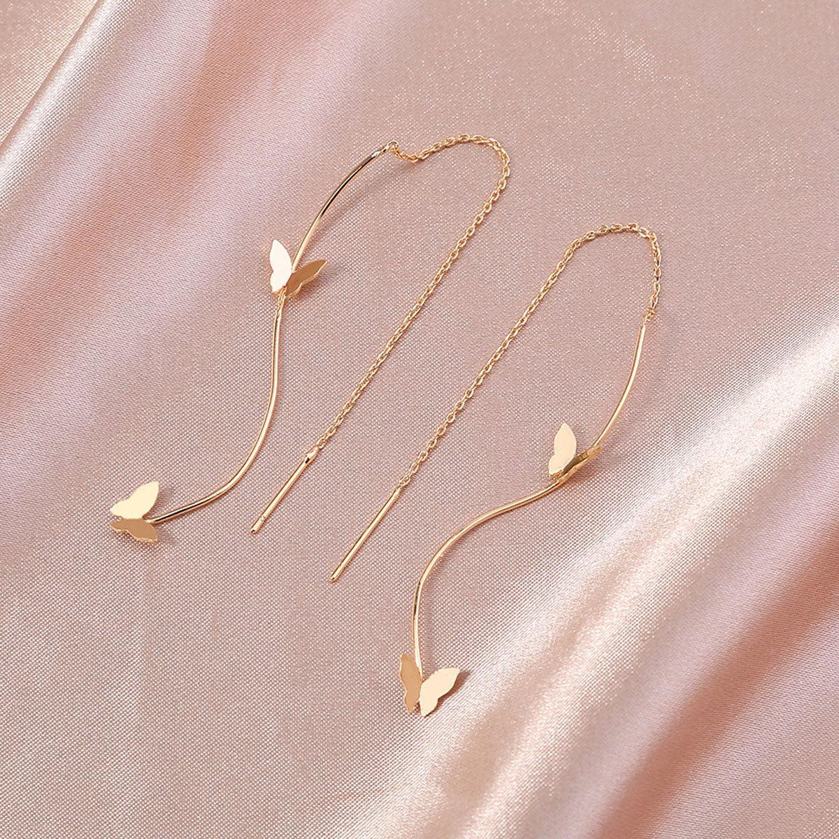 Add a touch of nature-inspired elegance with these Gold Butterfly Threader Earrings. Crafted from high-quality gold-plated alloy, these dainty earrings feature a delicate long chain design with fluttering butterfly charms. Lightweight and comfortable, they’re perfect for everyday wear or special occasions. Ideal gift for women who love minimalist, feminine jewellery. Shop now to elevate your style with these trendy butterfly threader earrings.