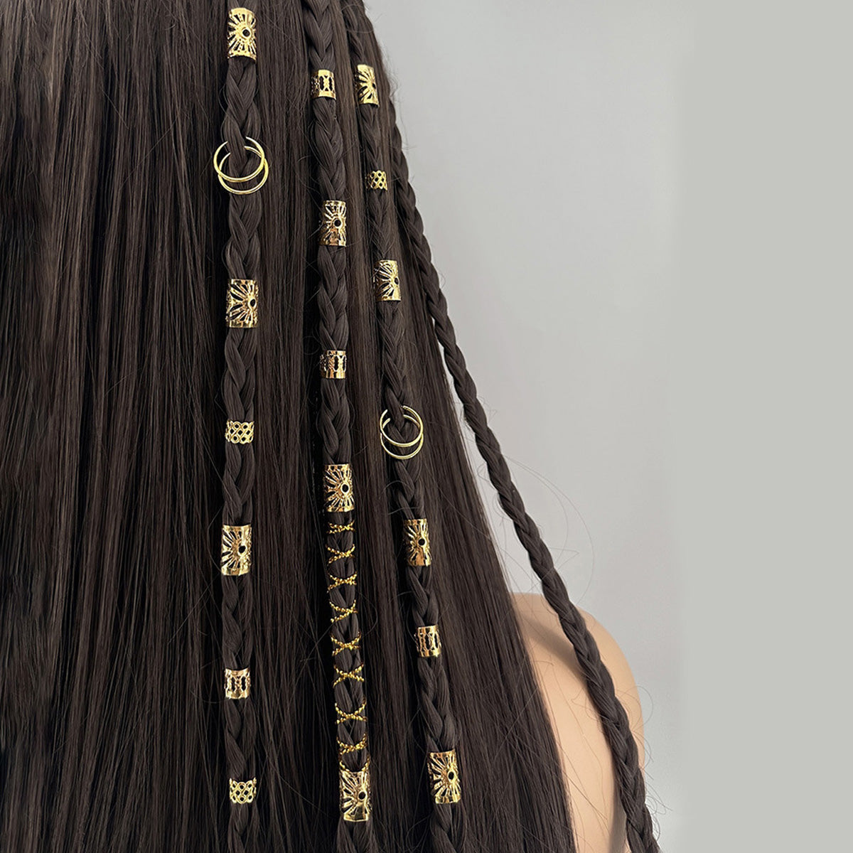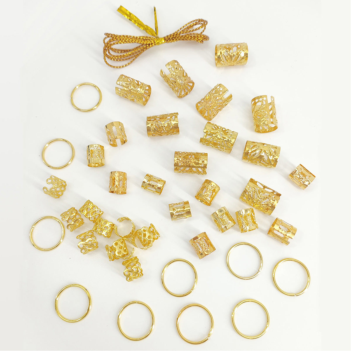 Add a regal touch to your braids and hairstyles with this 40-piece Elegant Hollow Out Gold Hair Ring Set. Designed for women who love to accessorize their hair with style, this set includes intricately designed gold-tone cuffs, loops, and rings in assorted sizes — perfect for braids, twists, dreadlocks, or festive hairdos.