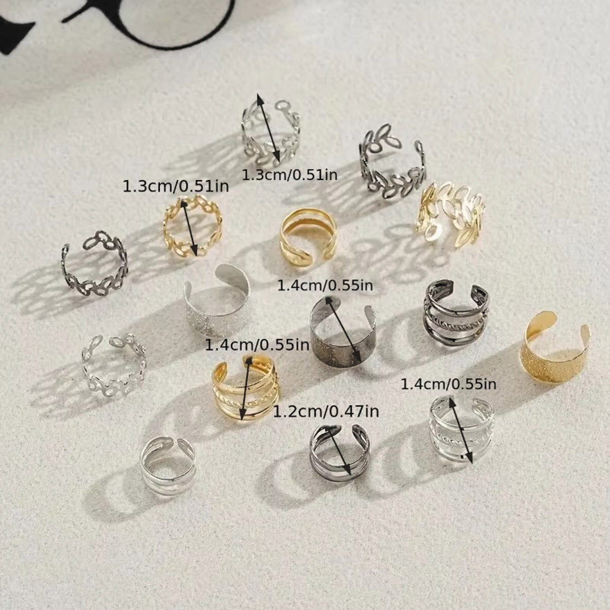 Discover effortless style with this chic set of gold-tone ear cuffs, designed to give you a layered, multi-earring look without the need for piercings. This versatile collection includes various designs, from sleek bands to intricate leaf motifs and textured wraps, allowing you to mix and match for a personalized statement.