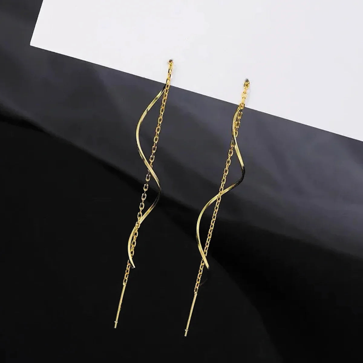 Elevate Your Look with Our Elegant Gold Spiral Threader Earrings!