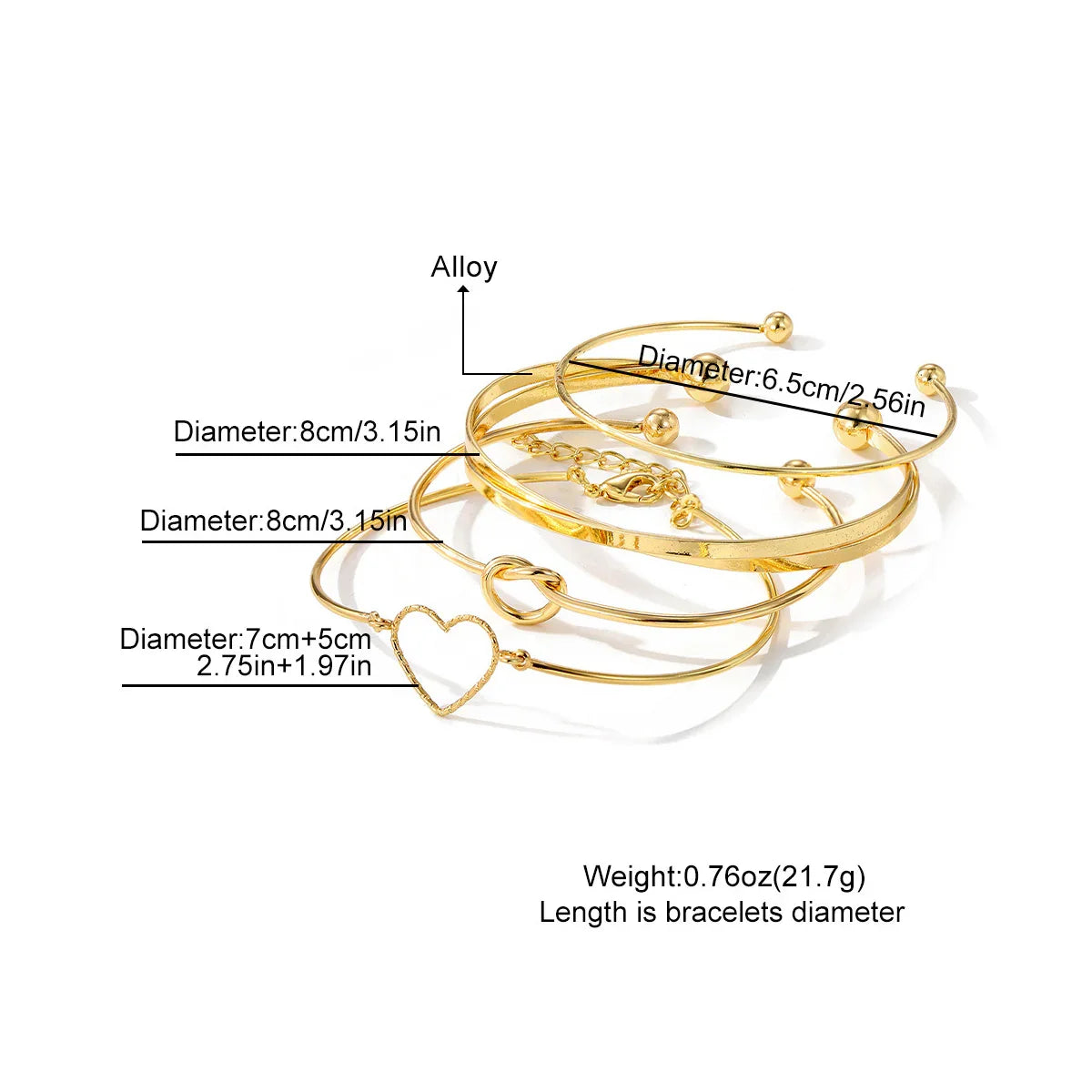 Elevate your wrist game with our stunning gold stackable bangle set! This curated collection features four unique pieces, including a delicate open heart design, a chic knot bangle, sleek minimalist cuffs, and a modern criss-cross bangle. Perfect for layering or wearing individually, these versatile gold bracelets add a touch of trendy sophistication to any outfit. Ideal for daily wear or special occasions, and makes a beautiful gift.