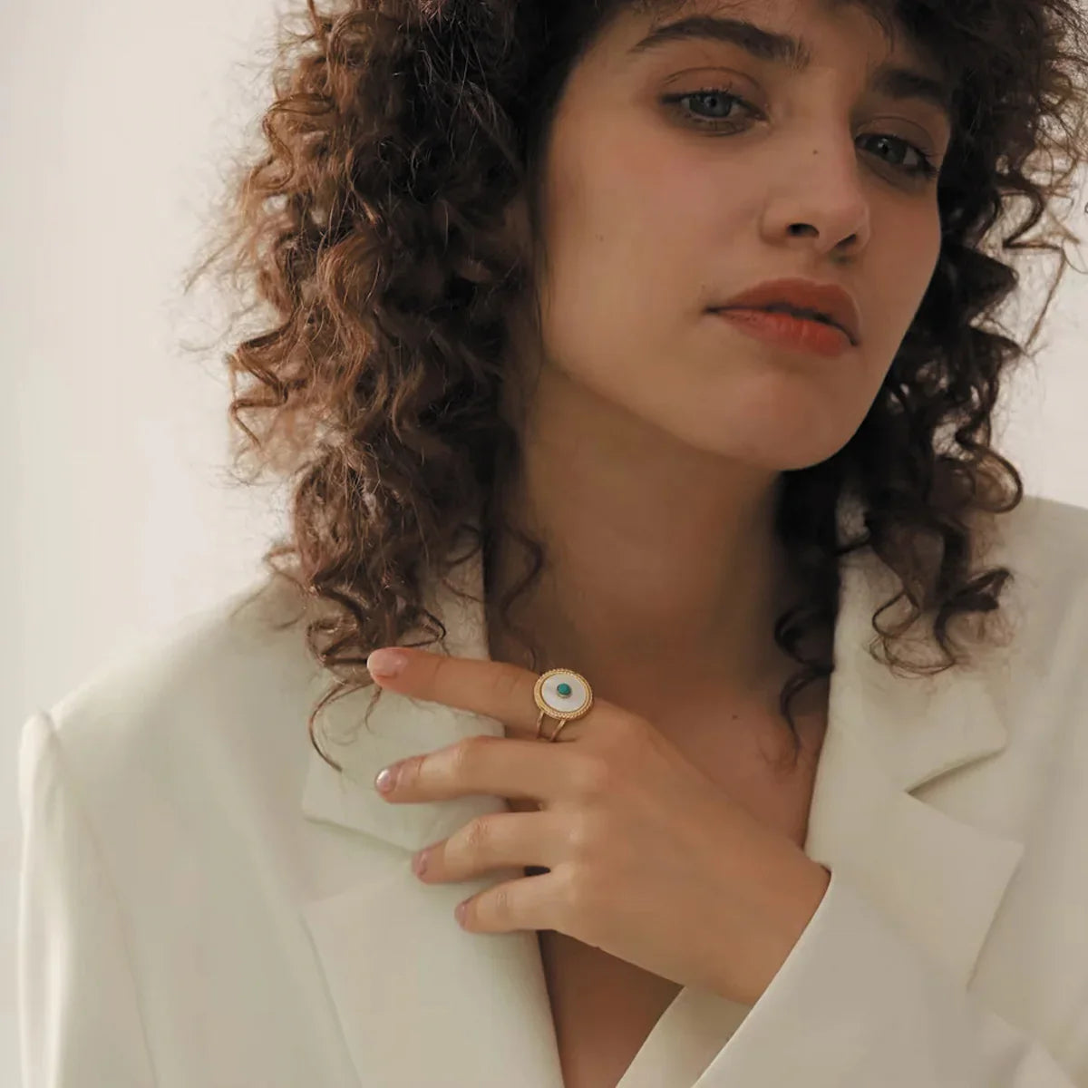 Unique Oval Design: Features a prominent white enamel oval with gold textured detailing.