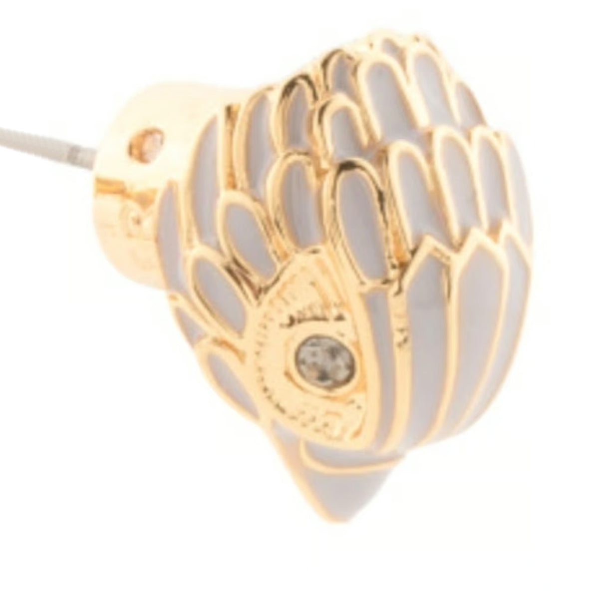 Sparkling crystals highlight signature eagle's-head stud earrings done in soft lavender enamel with a shiny gold finish.
