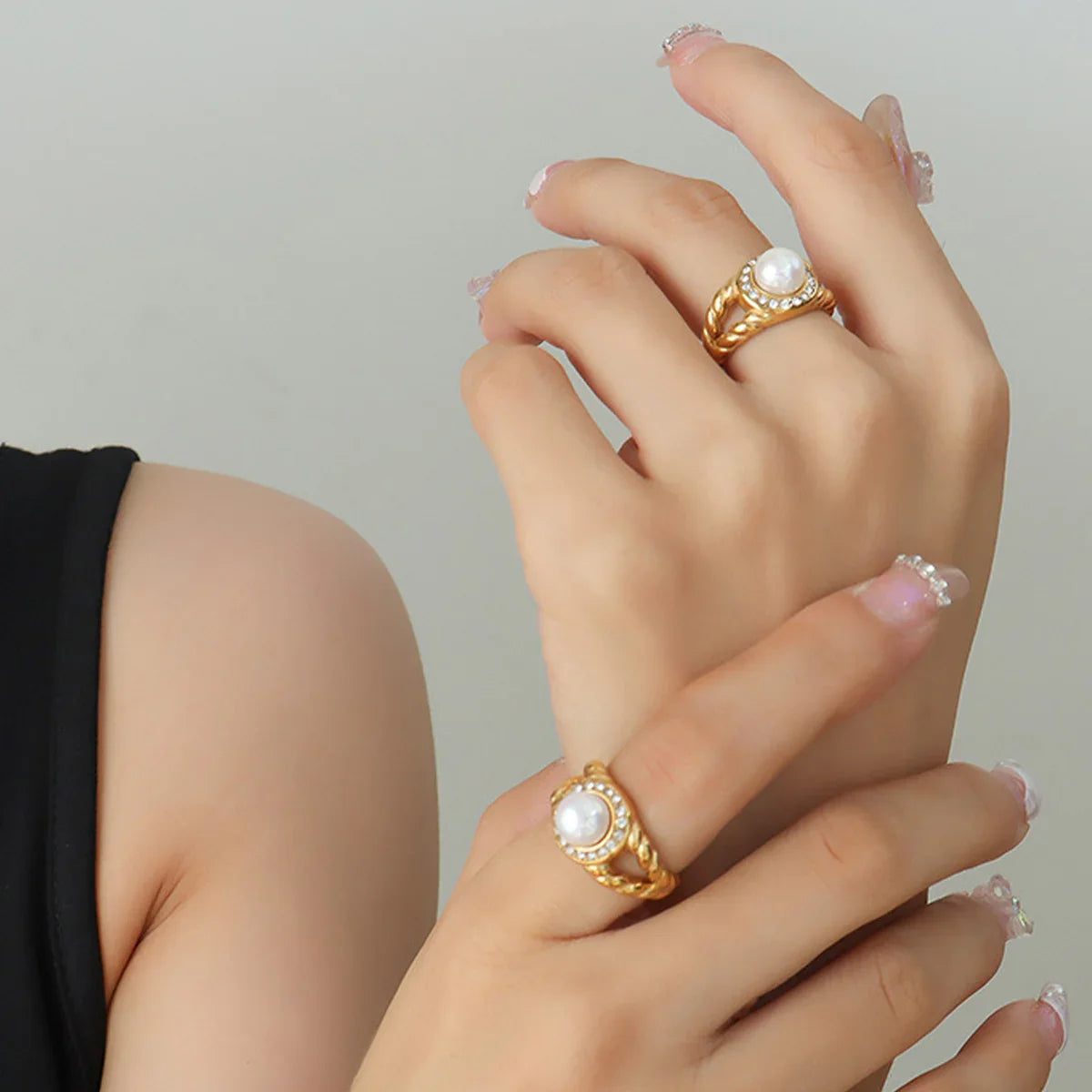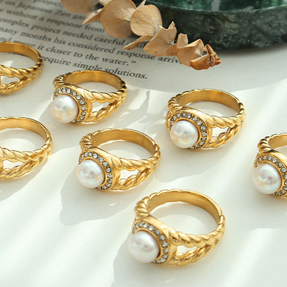 Description: Make a lasting impression with our luxurious gold statement ring. This stunning piece features a radiant pearl at its center, surrounded by dazzling cubic zirconia accents. The intricate twisted band enhances its opulent design. Ideal for those who appreciate fine jewelry and a touch of glamour.
