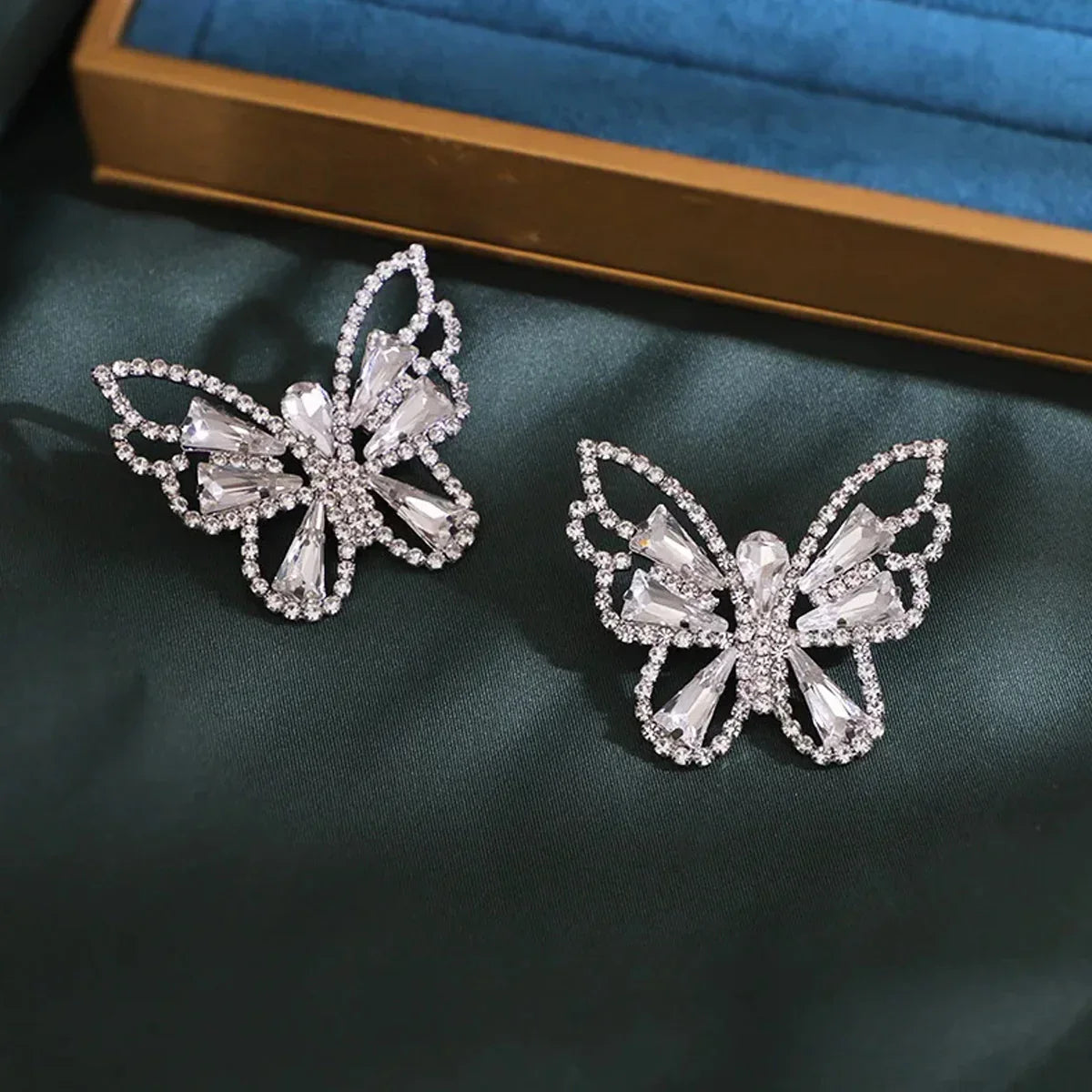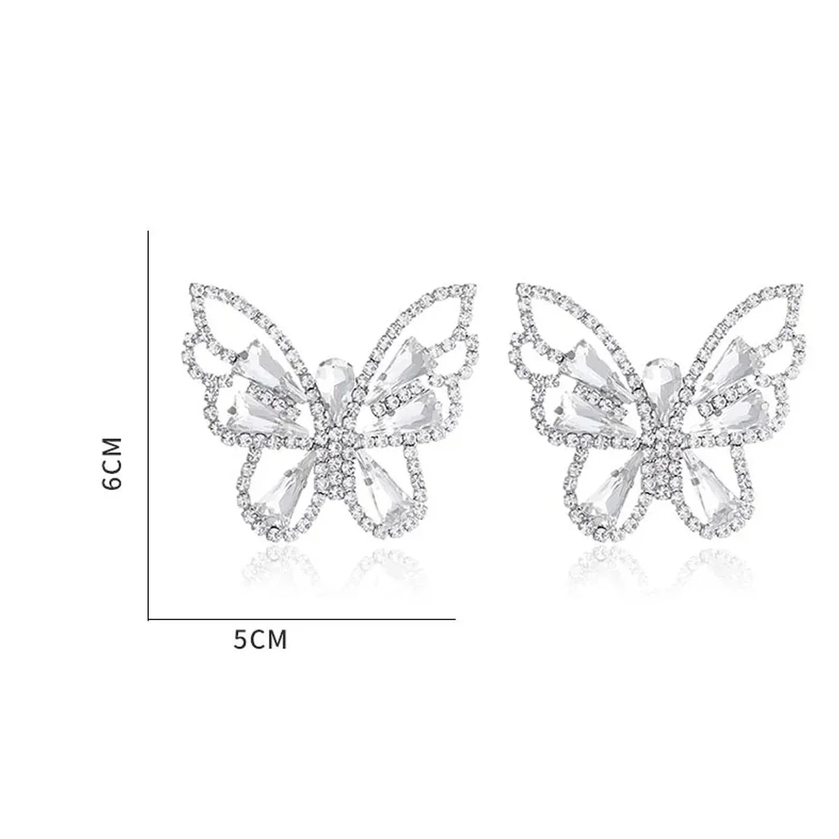 Flutter into style with these dazzling green rhinestone butterfly earrings. A truly trendy statement piece, these earrings are adorned with brilliant peridot-hued crystals, perfect for adding a vibrant touch to any outfit. Embrace playful elegance with these eye-catching butterfly earrings.