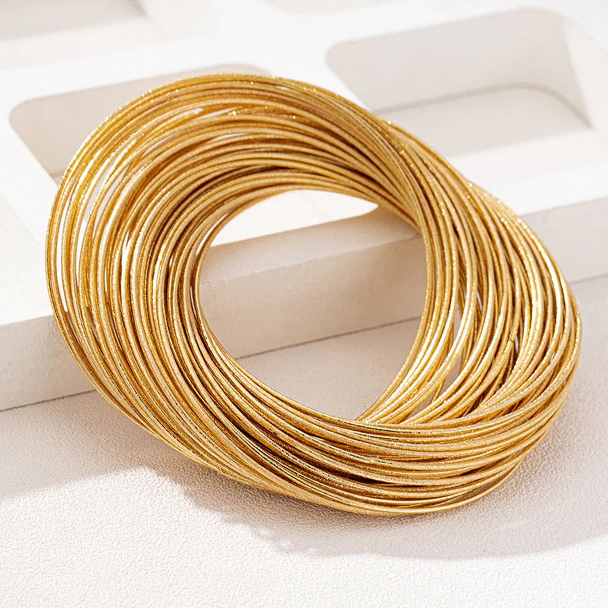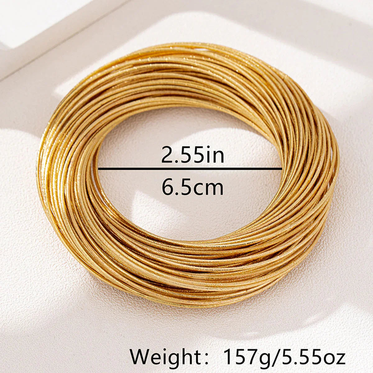 Elevate your accessory game with this chic set of stackable gold metallic bangles. Designed with a 2.55-inch (6.5 cm) inner diameter, these bracelets offer a comfortable fit for most wrists and a sleek, layered look that never goes out of style.
