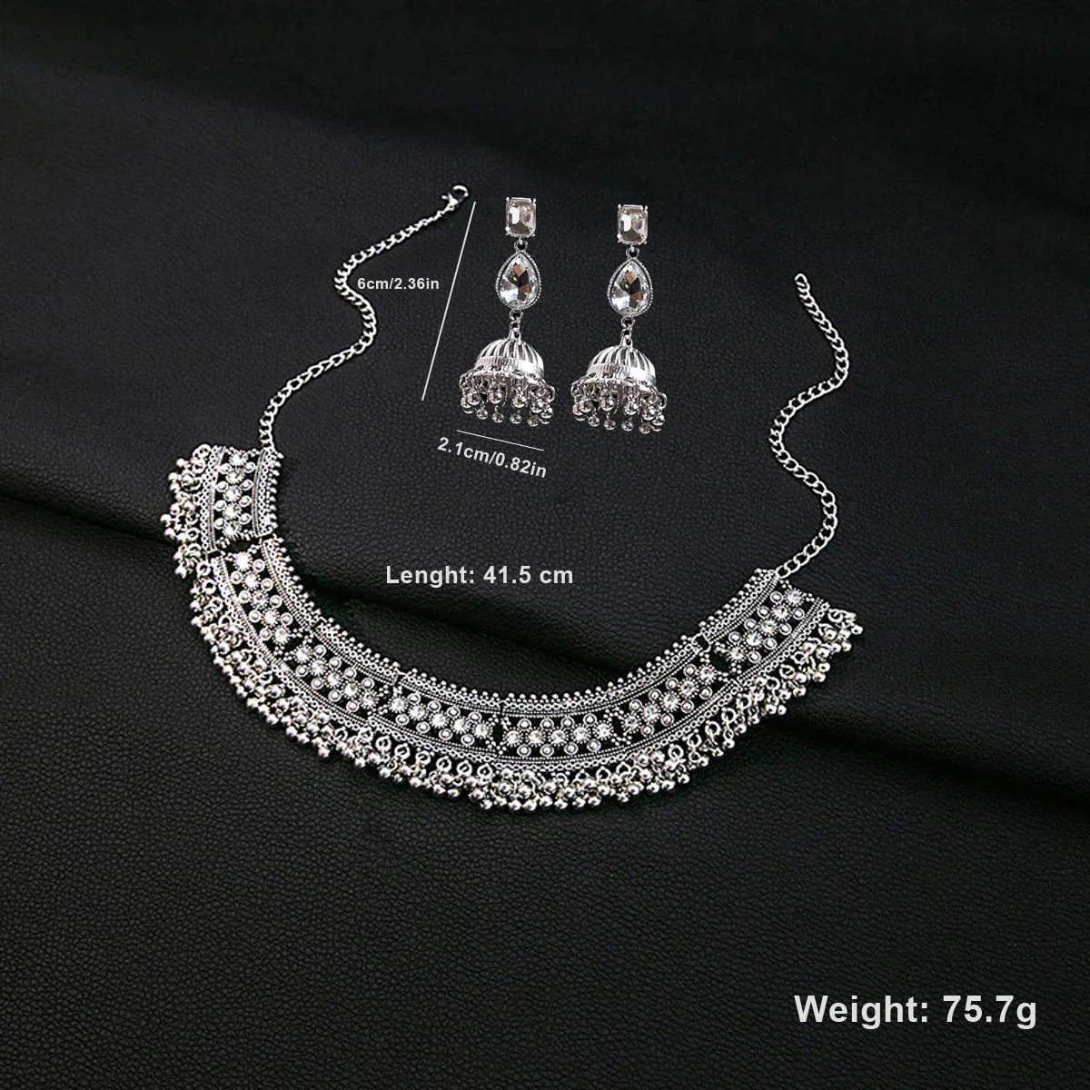 Elevate your look with our beautiful Women's Silver Oxidized Choker & Earring Set. This elegant two-piece jewelry collection includes a intricately designed choker necklace and matching drop earrings, both featuring a classic oxidized silver finish. A perfect choice for those who love traditional or Indian-inspired jewelry, adding a unique and sophisticated touch to any outfit.